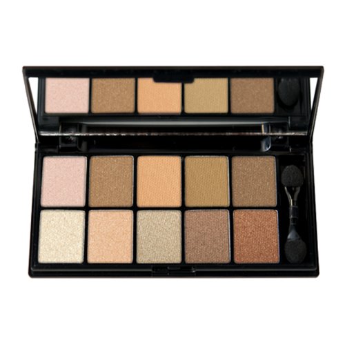 Ten shades of eye shadow that features bold combinations, high pigmentation and lasting wear. Shade selections are inspired by colors and fashion form around the world. Sleek case includes a double ended sponge applicator. Perfect for application on the go.